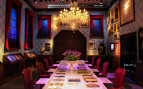 Como num filme, a primeira cena é na mansão Wayne. Uma imensa sala de jantar logo na entrada recebe os visitantes. A mesa está posta, mas não há ninguém por ali, exceto o fiel mordomo, Alfred.