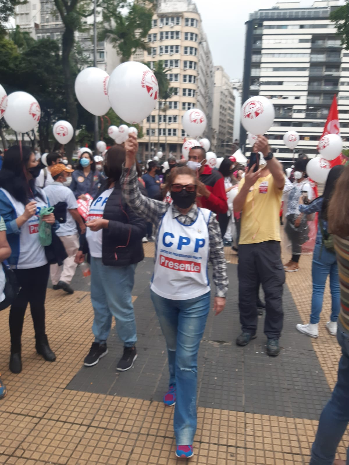 Ao invés de comemorar, o CPP e outras entidades do funcionalismo público foram às ruas para lutar pelos seus direitos, que estão sendo tirados pelo governo, e pedir mais respeito aos profissionais da Educação.