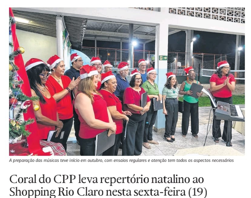 Divulgação As apresentações natalinas do Coral do CPP Rio Claro estão repercutindo na mídia local e devem atrair grande público. Serão duas participações gratuitas em pontos diferentes nesta sexta-feira, 19 de dezembro. A primeira acontece às 19h, no Shopping Rio...