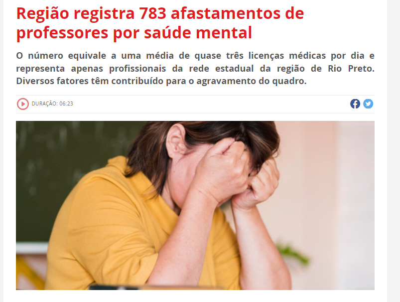 Divulgação O alto número de afastamento de docentes de Ribeirão Preto e região por questões de saúde mental foi pauta de uma matéria da Rádio CBN. Os dados divulgados pelo CPP seguem repercutindo na mídia, e o diretor-geral da entidade, Alessandro Soares comentou o...