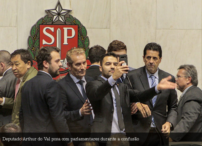 A sessão plenária e a transmissão ao vivo da TV Alesp foram suspensas imediatamente, mas a confusão continuou. Arthur fez gestos obscenos para a galeria e saiu do plenário rodeado por apoiadores e policiais. Alguns presentes xingaram o deputado, sugeriram morte e o chamaram de “menino mimado”.