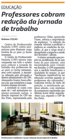 A matéria do jornalista Rubens Celso destaca o apoio da diretoria regional do CPP em São José do Rio Preto e a grande adesão ao abaixo-assinado que já conta centenas de assinaturas em poucos dias.