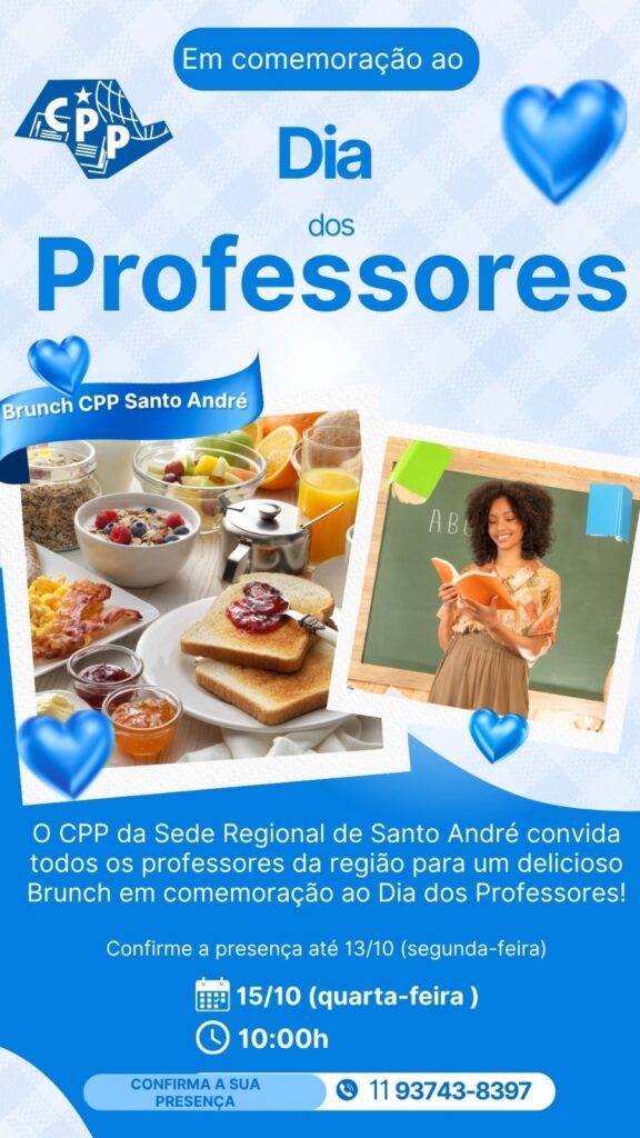 O CPP Santo André realizará um brunch em comemoração ao Dia do Professor.