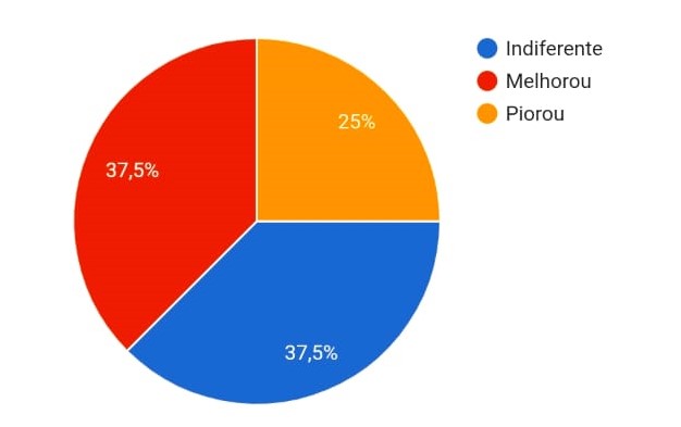 Isso porque, de acordo com 51% dos participantes da pesquisa feita pelo CPP em parceria com o canal Tiago na Área, não houve nenhuma melhora no aprendizado e nem nas notas.